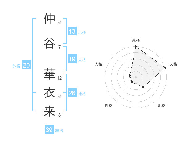 仲谷 華衣来さんの天格は13画の5点!