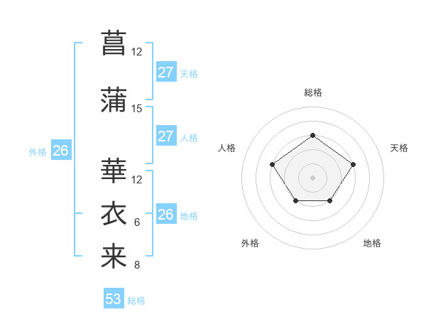 菖蒲 華衣来さんを姓名の画数から五運を鑑定