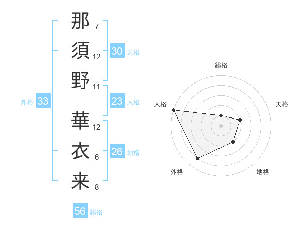 那須野 華衣来さんを姓名の画数から五運を鑑定