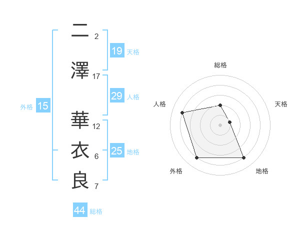 二澤 華衣良さんの総格は44画の2点!