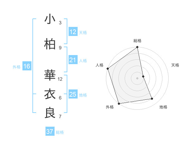 小柏 華衣良さんを姓名の画数から五運を鑑定