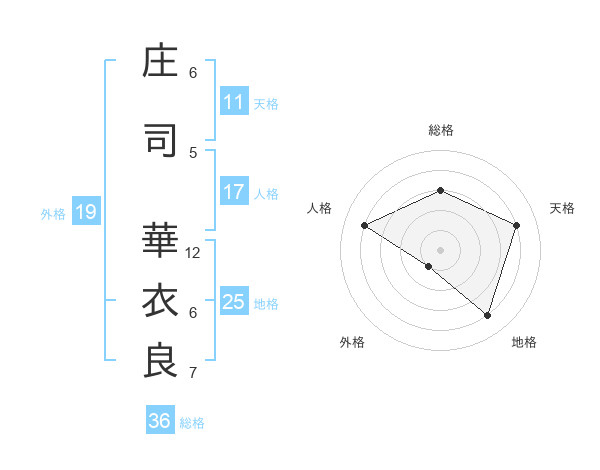 庄司 華衣良さんの地格は25画の4点!