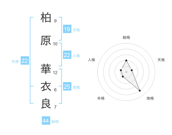 柏原 華衣良さんを姓名の画数から五運を鑑定