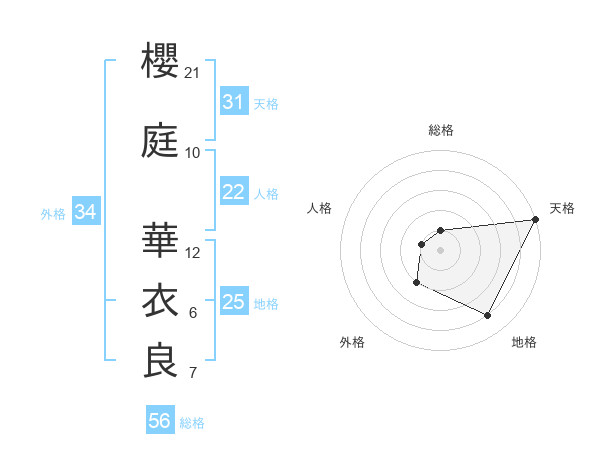 櫻庭 華衣良さんを姓名の画数から五運を鑑定