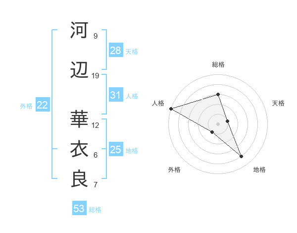 河辺 華衣良さんを姓名の画数から五運を鑑定