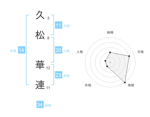 久松 華連さんの総格は34画の2点!
