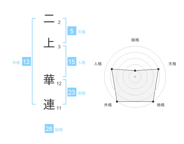 二上 華連さんの地格は23画の5点!