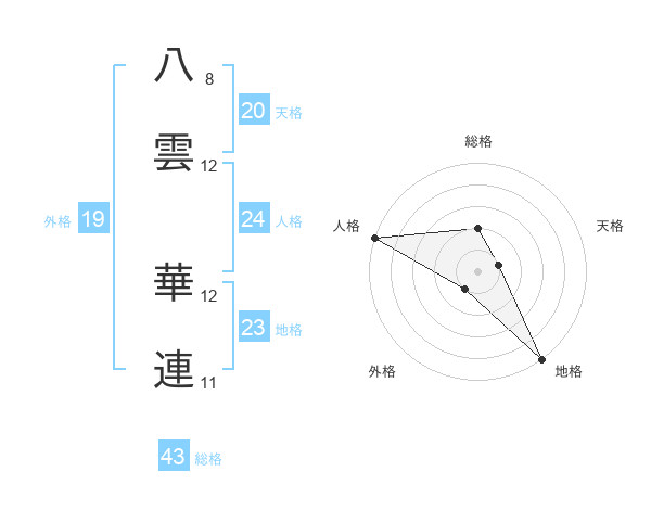 八雲 華連さんの総格は43画の2点!