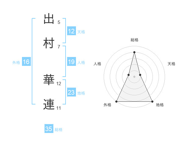 出村 華連さんの総格は35画の4点!