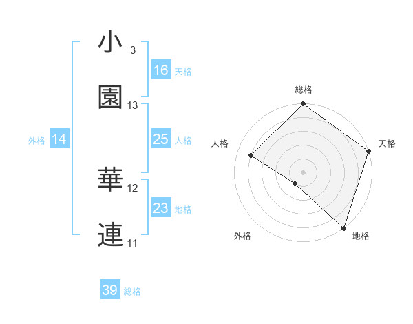 小園 華連さんの天格は16画の5点!