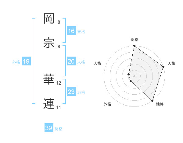 岡宗 華連さんの総格は39画の5点!