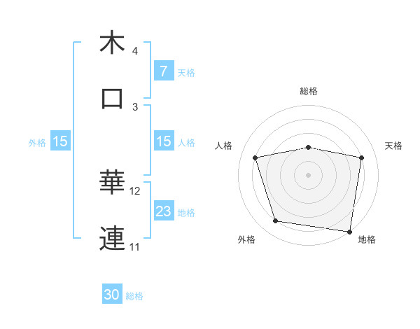 木口 華連さんの総格は30画の2点!