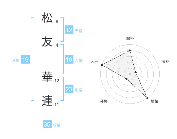松友 華連さんの天格は12画の1点!