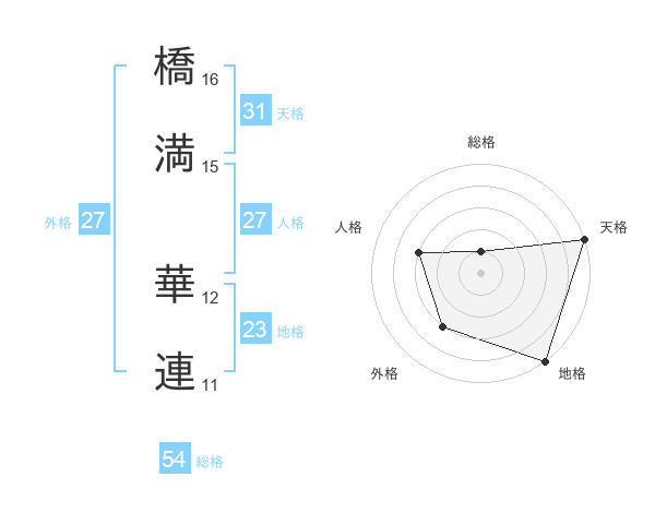 橋満 華連さんの総格は54画の1点!