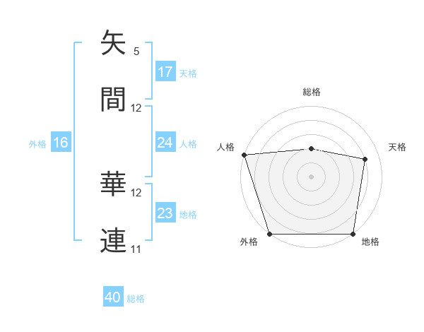 矢間 華連さんの外格は16画の5点!