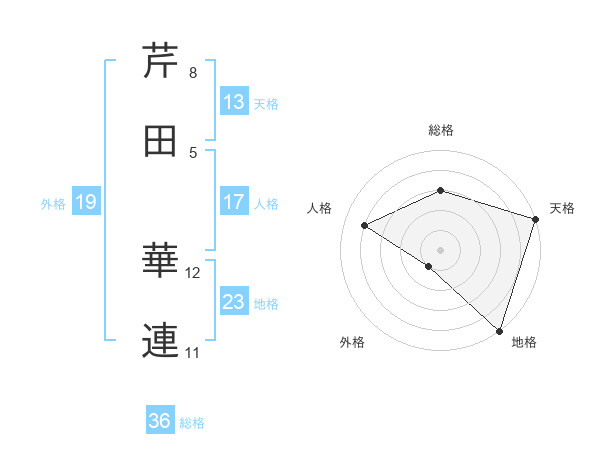 芹田 華連さんの天格は13画の5点!