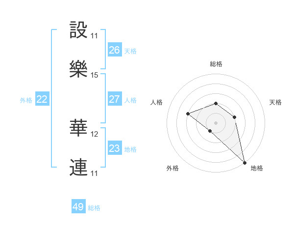 設樂 華連さんの外格は22画の1点!