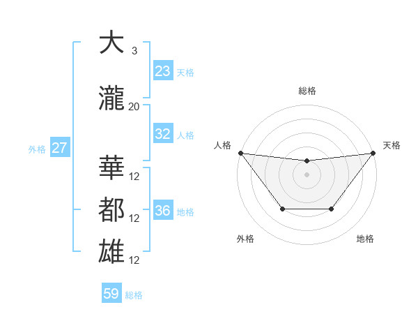 大瀧 華都雄さんを姓名の画数から五運を鑑定
