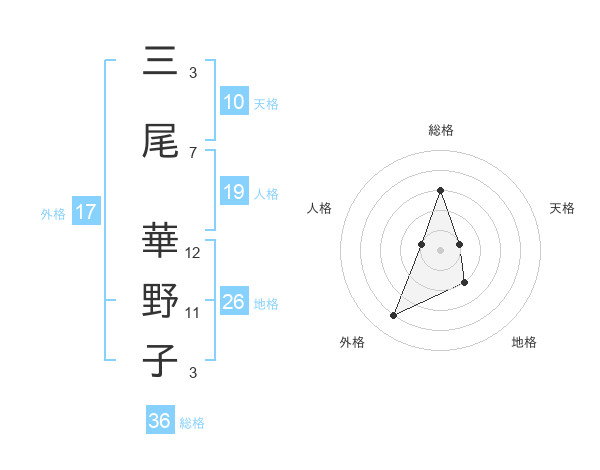 三尾 華野子さんを姓名の画数から五運を鑑定