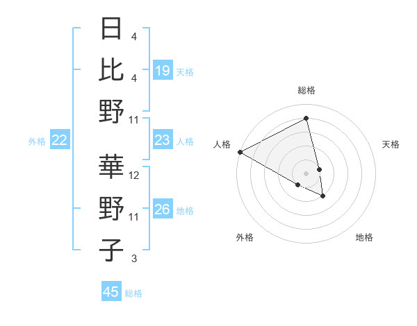 日比野 華野子さんを姓名の画数から五運を鑑定