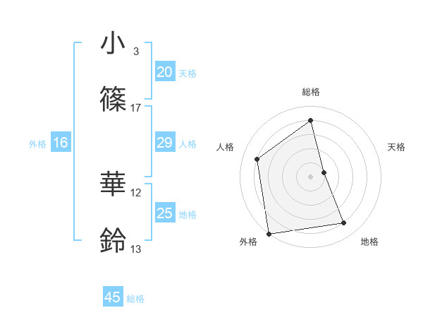 小篠 華鈴さんの天格は20画の1点!