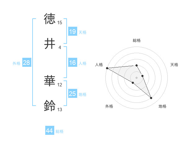 徳井 華鈴さんの総格は44画の2点!