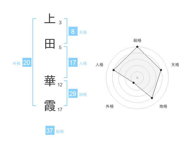 上田 華霞さんの総格は37画の5点!