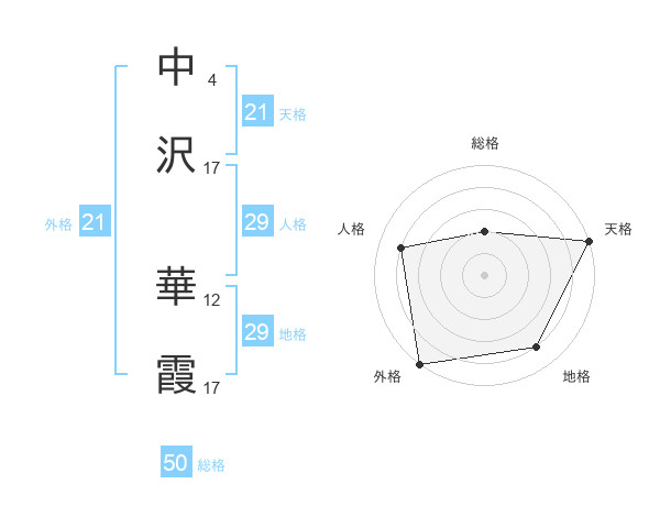 中沢 華霞さんの天格は21画の5点!