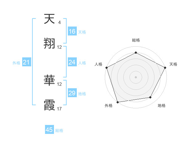 天翔 華霞さんの総格は45画の4点!