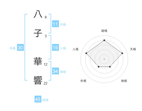 八子 華響さんの総格は45画の4点!