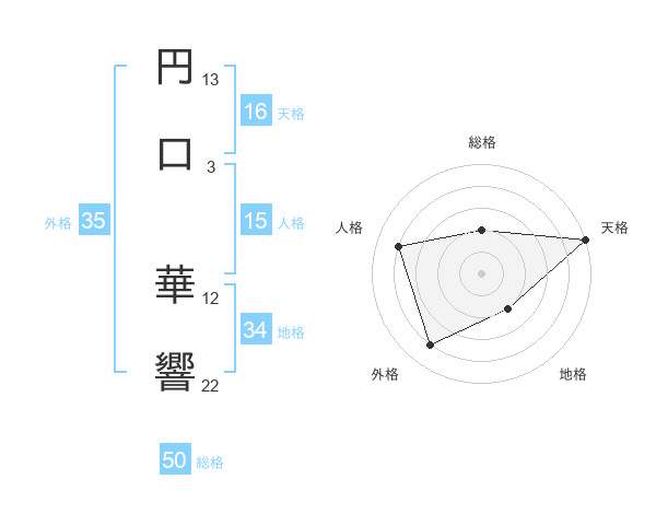 円口 華響さんの総格は50画の2点