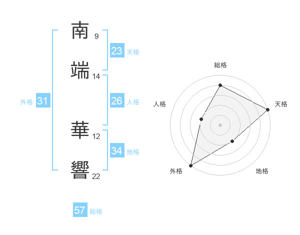 南端 華響さんの総格は57画の4点!