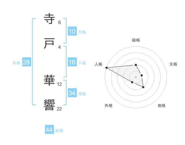 寺戸 華響さんの総格は44画の2点!