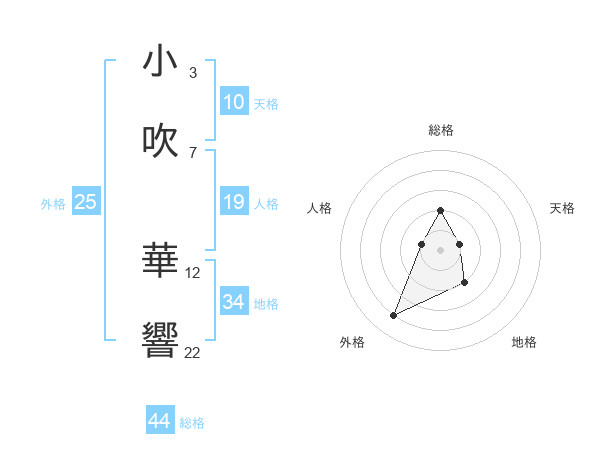 小吹 華響さんの総格は44画の2点
