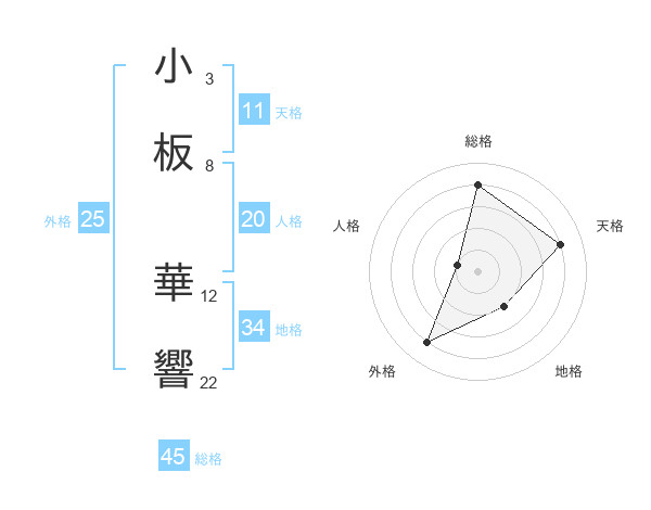 占い結果は姓名判断である以上、良い場合も悪い場合もありますが、決してお名前を誹謗中傷するものでなく、画数の自動計算によって得られたものです。また、本サイトの検索によって得られた鑑定結果で、第三者を誹謗中傷したり名誉を棄損するような行為を禁じます。