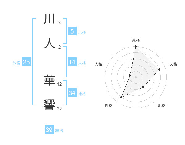 川人 華響さんの総格は39画の5点!