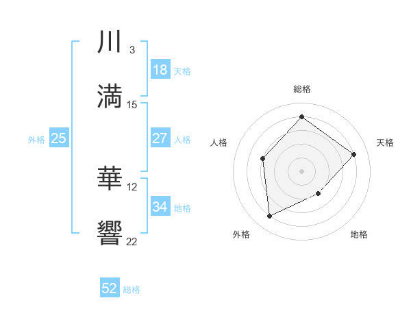 川満 華響さんの総格は52画の4点