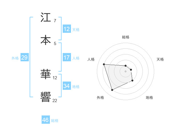 江本 華響さんの地格は34画の2点