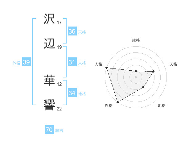 沢辺 華響さんの総格は70画の1点!