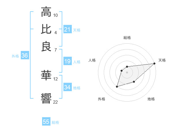 高比良 華響さんの天格は21画の5点!