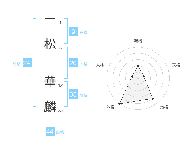 一松 華麟さんの総格は44画の2点!
