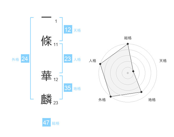 一條 華麟さんの総格は47画の5点!
