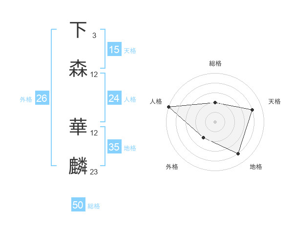 下森 華麟さんの総格は50画の2点!