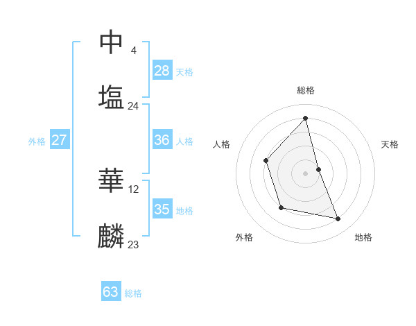 中塩 華麟さんの外格は27画の3点!