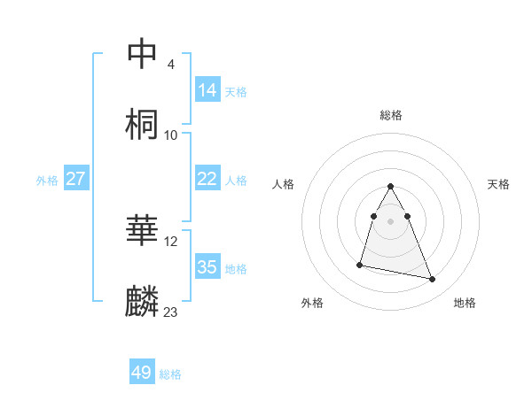 中桐 華麟さんの総格は49画の2点!