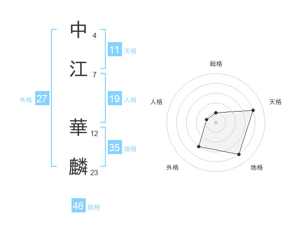 中江 華麟さんの天格は11画の4点!