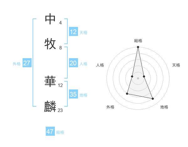 中牧 華麟さんの総格は47画の5点!