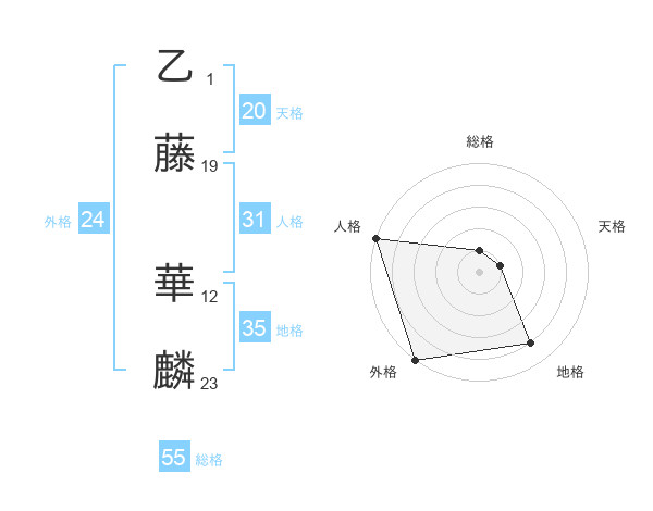 乙藤 華麟さんの天格は20画の1点!