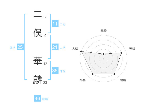 二俣 華麟さんの外格は25画の4点!
