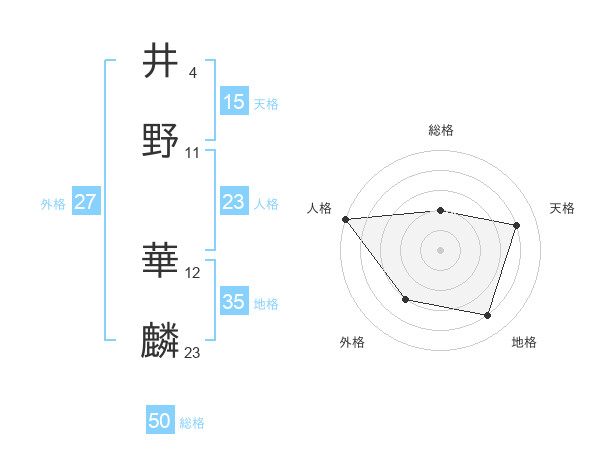 井野 華麟さんの総格は50画の2点!